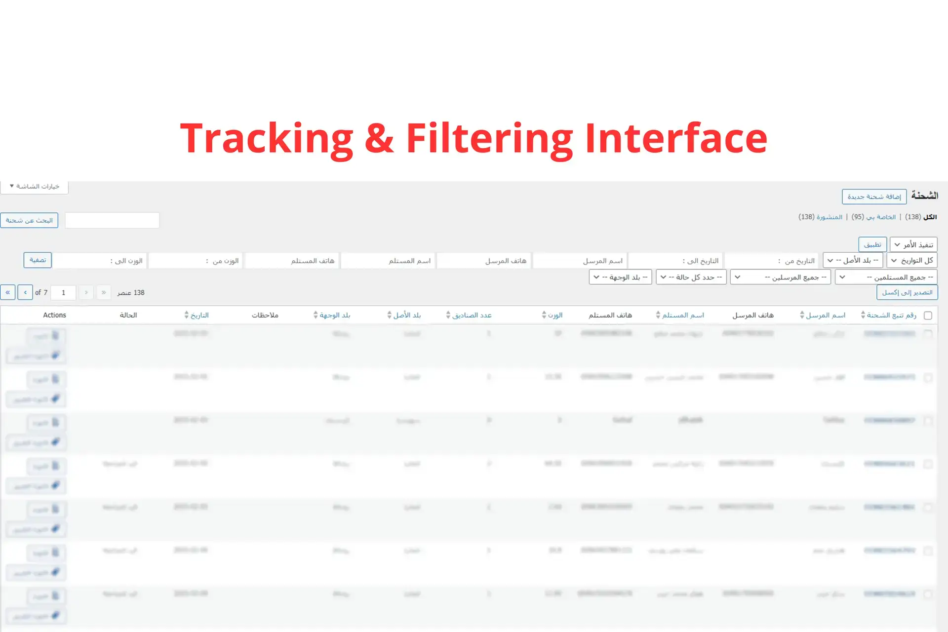 - Tracking & Filtering Interface: Enables real-time shipment tracking with advanced filtering options for efficient data management.